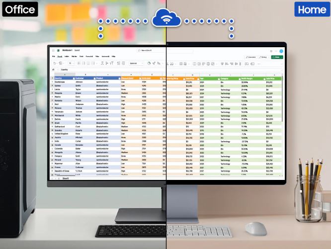 Získej vzdálený přístup na svůj počítač nebo pracuj přímo na monitoru. Se zabudovanými aplikacemi jako Microsoft 365 nemusíš vytahovat svůj notebook a přesto bez zdržování odpovíš na všechny e-maily.