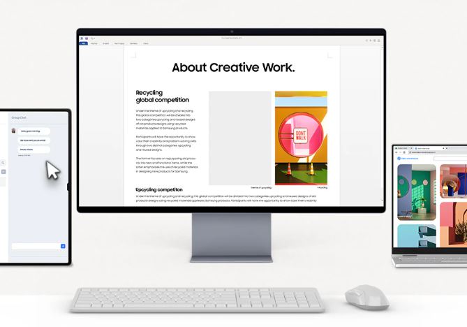 Posuň multitasking a produktivitu na novou úroveň. Jednoduše přesouvej dokumenty a obrázky mezi různými zařízeními Samsung na obrazovce Smart Monitoru – rychle, pohodlně a na větší ploše. Vše, co k tomu potřebuješ, je jen myš a klávesnice.