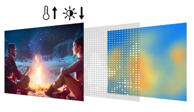 Systém pro regulaci teploty využívá algoritmy pro automatickou úpravu jasu a ochranu před přehřátím.