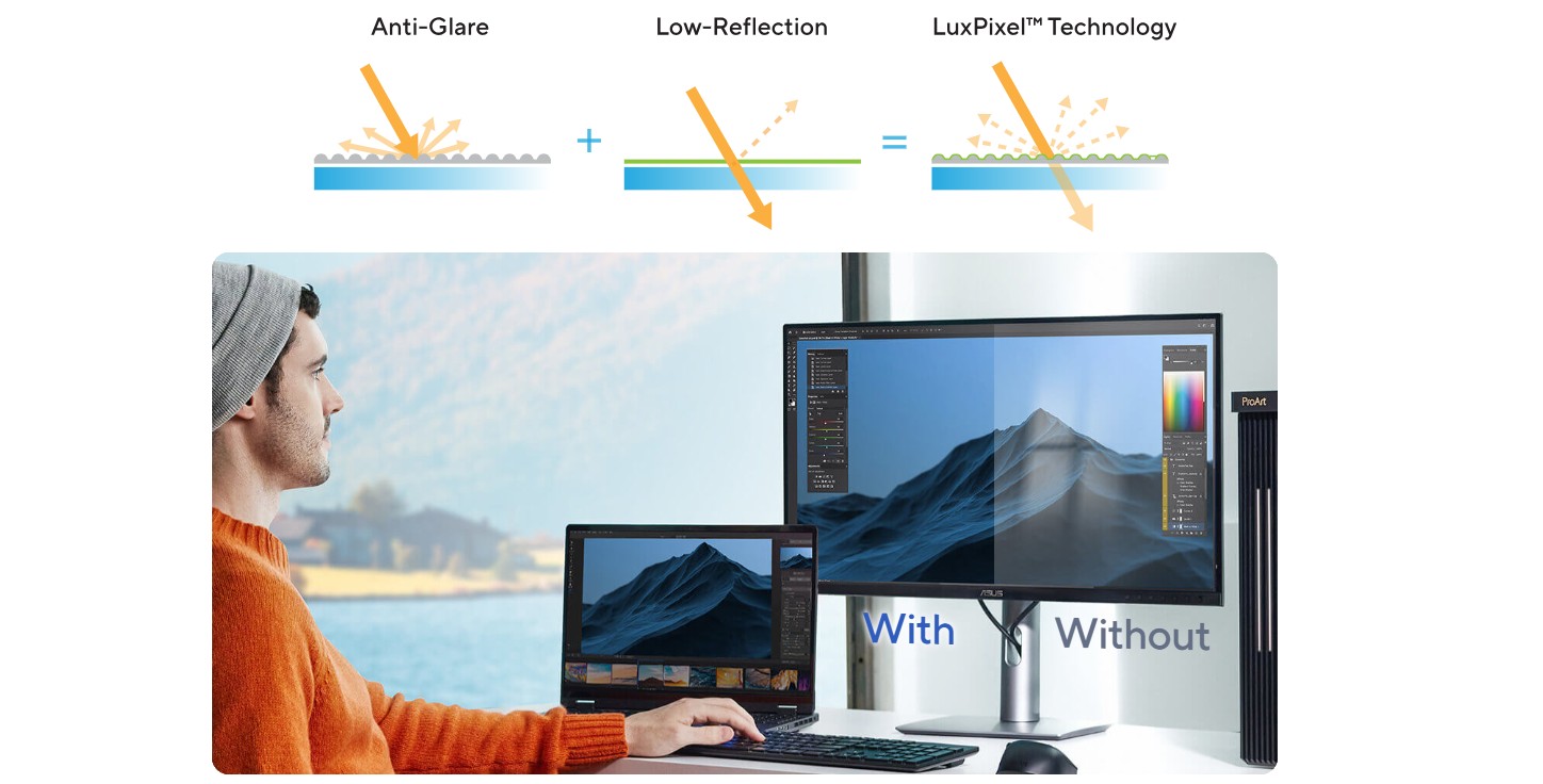 Technologie LuxPixel™ je antireflexnĂ vrstva s nĂzkĂ˝m odrazem (AGLR), která poskytuje efekt obrazovky podobnĂ˝ papĂru. Na rozdĂl od tradiÄŤnĂch matnĂ˝ch panelĹŻ, kterĂ© ÄŤasto zobrazujĂ mÄ›kÄŤĂ obrázky, technologie LuxPixel™ minimalizuje odrazy, aby uĹľivatel vidÄ›l pouze pĹ™esnĂ© barvy a ostrĂ© detaily.
