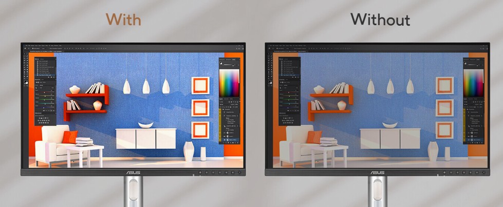 Monitor PA32QCV je vybaven technologià ASUS Light Sync se dvěma senzory, které zajišťujà mimořádně jasný obraz a přesnou barevnou teplotu.