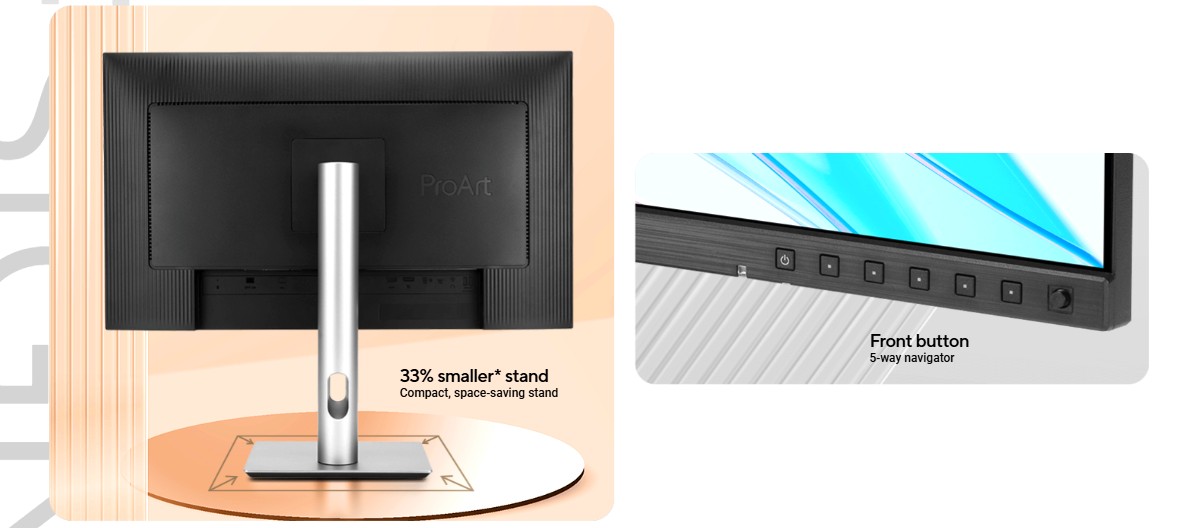 KaĹľdĂ˝ displej ProArt je vybaven ergonomickĂ˝m stojanem s moĹľnostĂ naklonÄ›nĂ, otoÄŤenĂ, otoÄŤenĂ a nastavenĂ výšky pro pohodlnĂ© sledovánĂ. MoĹľnost otoÄŤenĂ obrazovky o 90° ve smÄ›ru nebo proti smÄ›ru hodinovĂ˝ch ruÄŤiÄŤek pro pouĹľitĂ v reĹľimu na výšku se hodĂ pĹ™i práci s dlouhĂ˝mi dokumenty, programovánĂm nebo procházenĂm webu. Funkce rychlĂ©ho uvolnÄ›nĂ navĂc usnadĹuje pĹ™ipevnÄ›nĂ displeje pomocĂ integrovanĂ©ho nástÄ›nnĂ©ho držáku VESA – bez šroubĹŻ, takĹľe je to hotovĂ© bÄ›hem nÄ›kolika sekund!