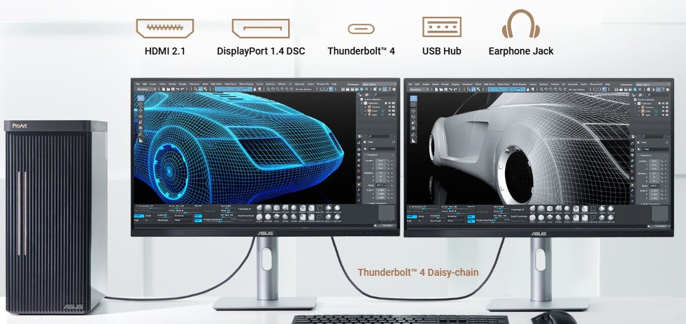 KromÄ› dvou portĹŻ Thunderbolt™ 4 nabĂzĂ PA32QCV celou Ĺ™adu moĹľnostĂ pĹ™ipojenĂ, vÄŤetnÄ› HDMI® 2.1, DisplayPort 1.4 DSC, USB typu A a dalšĂho downstream portu USB-C® pro kompatibilitu s širokou škálou zaĹ™ĂzenĂ. PA32QCV takĂ© obsahuje prĹŻchozĂ port pro sluchátka.