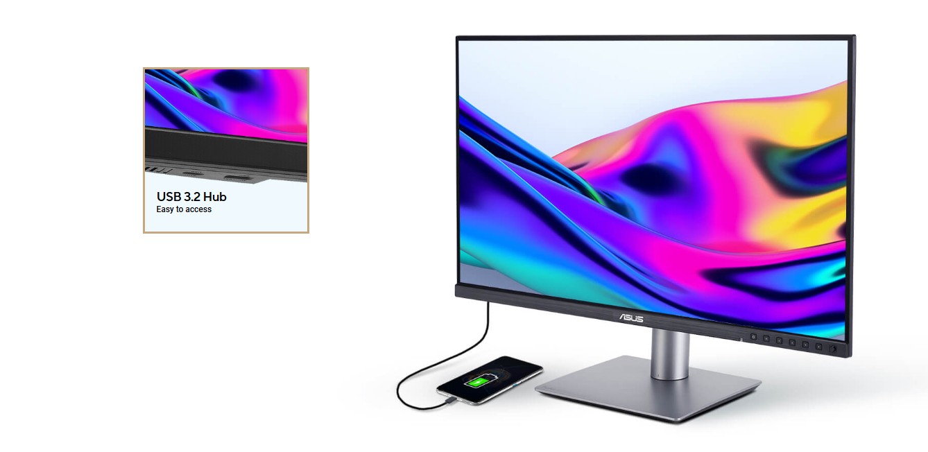 IntegrovanĂ˝ rozboÄŤovaÄŤ USB 3.2 podĂ©l spodnĂho rámeÄŤku monitoru PA32QCV obsahuje jeden port USB typu A a jeden port USB-C, coĹľ umoĹľĹuje snadnĂ© pĹ™ipojenĂ k celĂ© Ĺ™adÄ› zaĹ™ĂzenĂ a periferiĂ, jakoĹľ i k zaĹ™ĂzenĂm kompatibilnĂm s nabĂjenĂm.