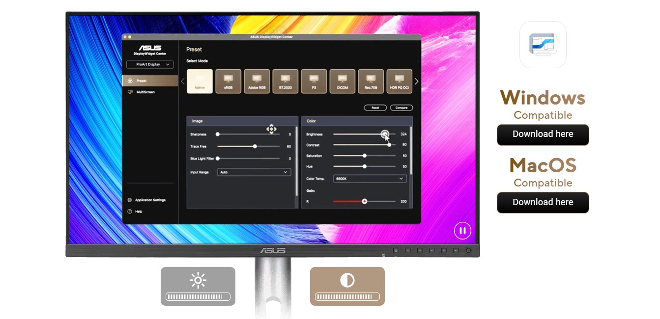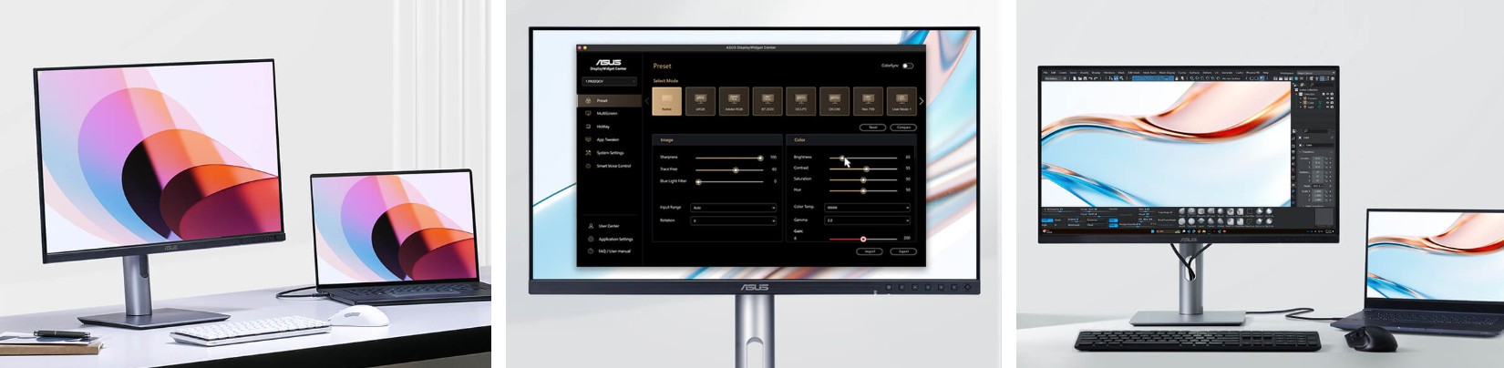 ASUS DisplayWidget Center je software, kterĂ˝ poskytuje intuitivnĂ rozhranĂ pro nastavenĂ monitoru, vÄŤetnÄ› jasu, kontrastu a teploty barev. AĹĄ uĹľ je monitor pouĹľĂván pro kaĹľdodennĂ sledovánĂ nebo pro profesionálnĂ kreativnĂ práci, uĹľivatelĂ© mohou snadno najĂt optimálnĂ nastavenĂ displeje pro vylepšenĂ˝ zážitek ze sledovánĂ.