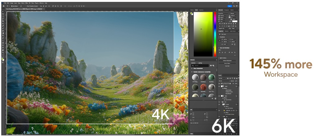 PA32QCV poskytuje o 145 % vĂce pracovnĂho prostoru neĹľ 4K monitor stejnĂ© velikosti. VÄ›tšà plocha umoĹľĹuje tvĹŻrcĹŻm snadno se pohybovat po kreativnĂm obsahu.