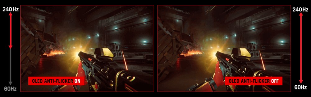 Exkluzivní technologie ROG OLED Anti-Flicker nabízí tři rozsahy obnovovací frekvence – vysoký, střední a vypnutý – pro snížení blikání při kolísání snímkové frekvence a zachování pohlcujícího herního zážitku.