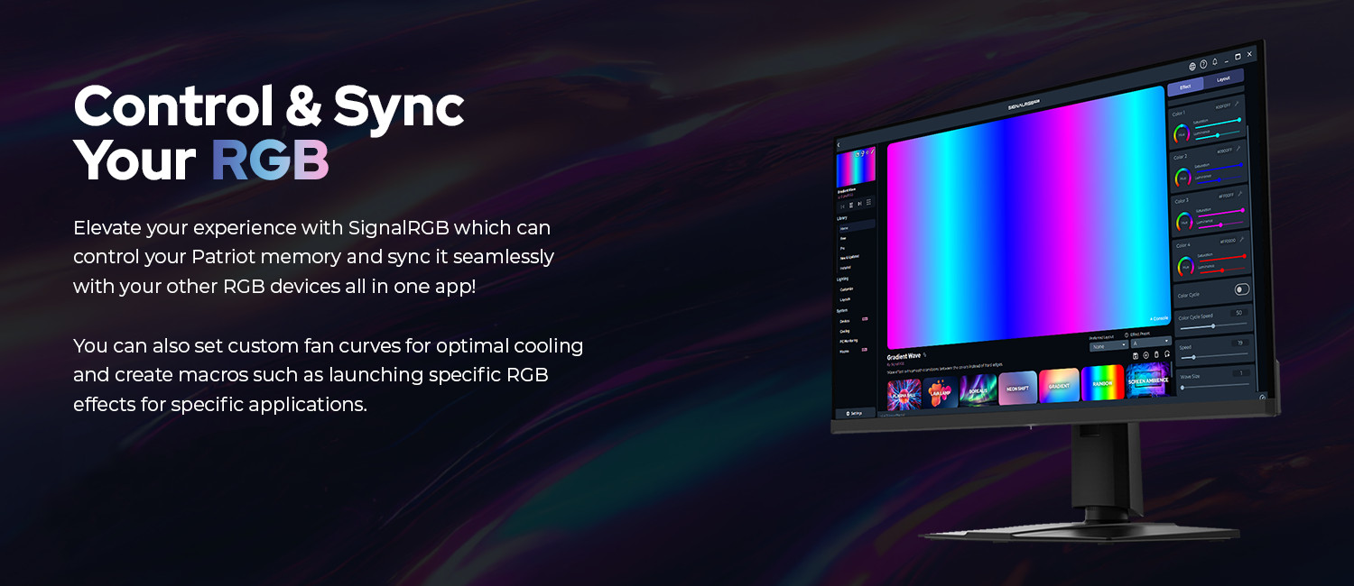 Posuňte svůj zážitek z RGB do nevídaných výšin! Naše produkty DRAM jsou plně kompatibilní se špičkovým softwarem Signal RGB a oficiálně licencované. Ponořte se do plně pohlcujícího herního zážitku s dynamickým osvětlením, které dokonale odráží váš jedinečný styl.