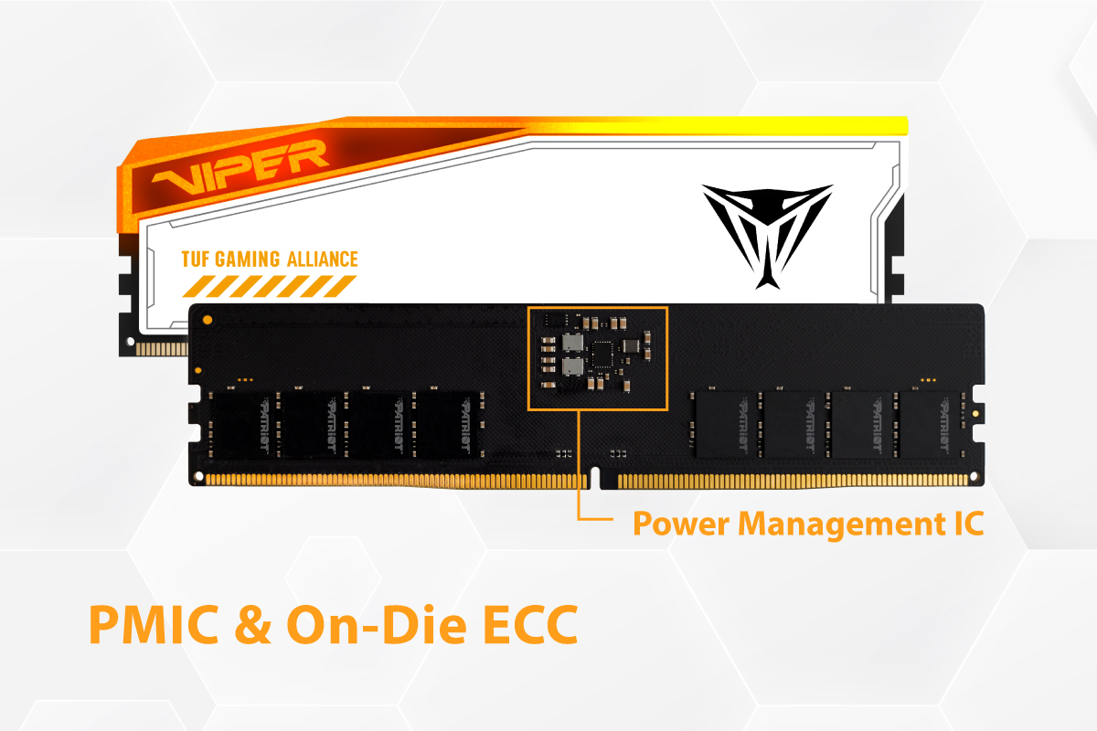 DĂky technologii On-Die ECC dokáže Viper Elite 5 TUF Gaming Alliance DDR5 opravovat jednobitovĂ© chyby a detekovat vĂcebitovĂ© chyby, coĹľ zajišťuje zachovánĂ integrity dat, pĹ™esnosti dat a spolehlivosti systĂ©mu v pĹ™ĂpadÄ› hardwarovĂ˝ch chyb nebo jinĂ˝ch problĂ©mĹŻ ve vysoce vĂ˝konnĂ˝ch prostĹ™edĂch. Paměť Viper Elite 5 TUF Gaming Alliance DDR5 je takĂ© vybavena integrovanĂ˝m vysoce kvalitnĂm obvodem PMIC pro provoz pĹ™i vyššà rychlosti s nižšĂm napÄ›tĂm a menšĂm mnoĹľstvĂm generovanĂ©ho tepla.