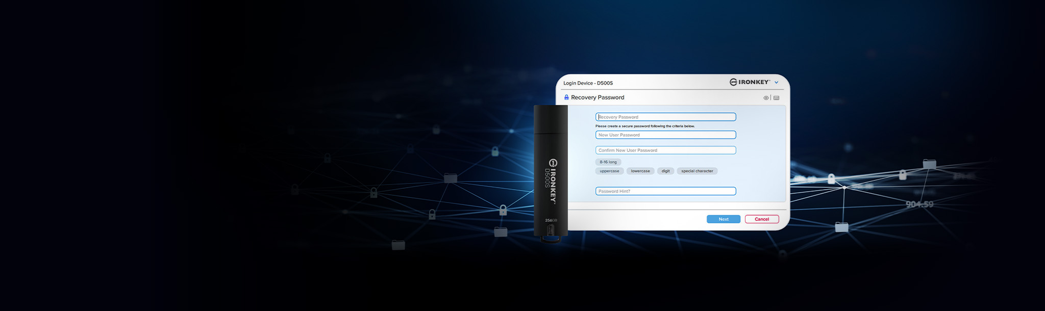 IronKey D500S je základním pilířem osvědčených postupů ke splnění požadavků ochrany proti ztrátě dat (DLP) s nejpřísnějším zabezpečením armádní úrovně, které vyhovuje zákonům a předpisům o šifrování dat, například CMMC, SOC2, NIS2, FISMA, GDPR, PIPEDA, HIPAA, HITECH, GLBA, SOX a CCPA, spolu s TAA. Model D500S nabízí více funkcí než jakýkoli jiný disk ve své třídě, což z něj činí špičkové bezpečnostní řešení pro ochranu cenných či důvěrných dat.