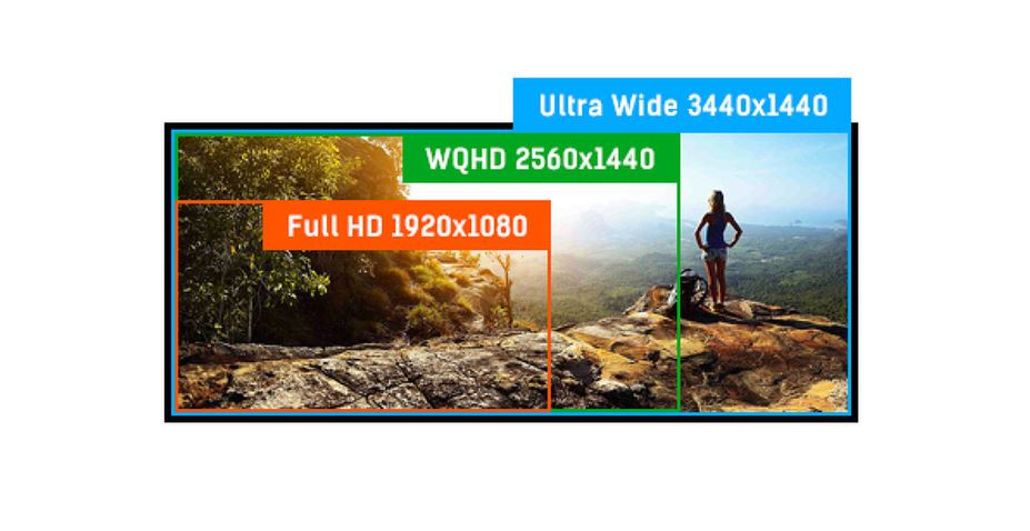 Rozlišení UWQHD (Ultra Wide QHD) nabízí ultra širokou (21:9) zobrazovací plochu.