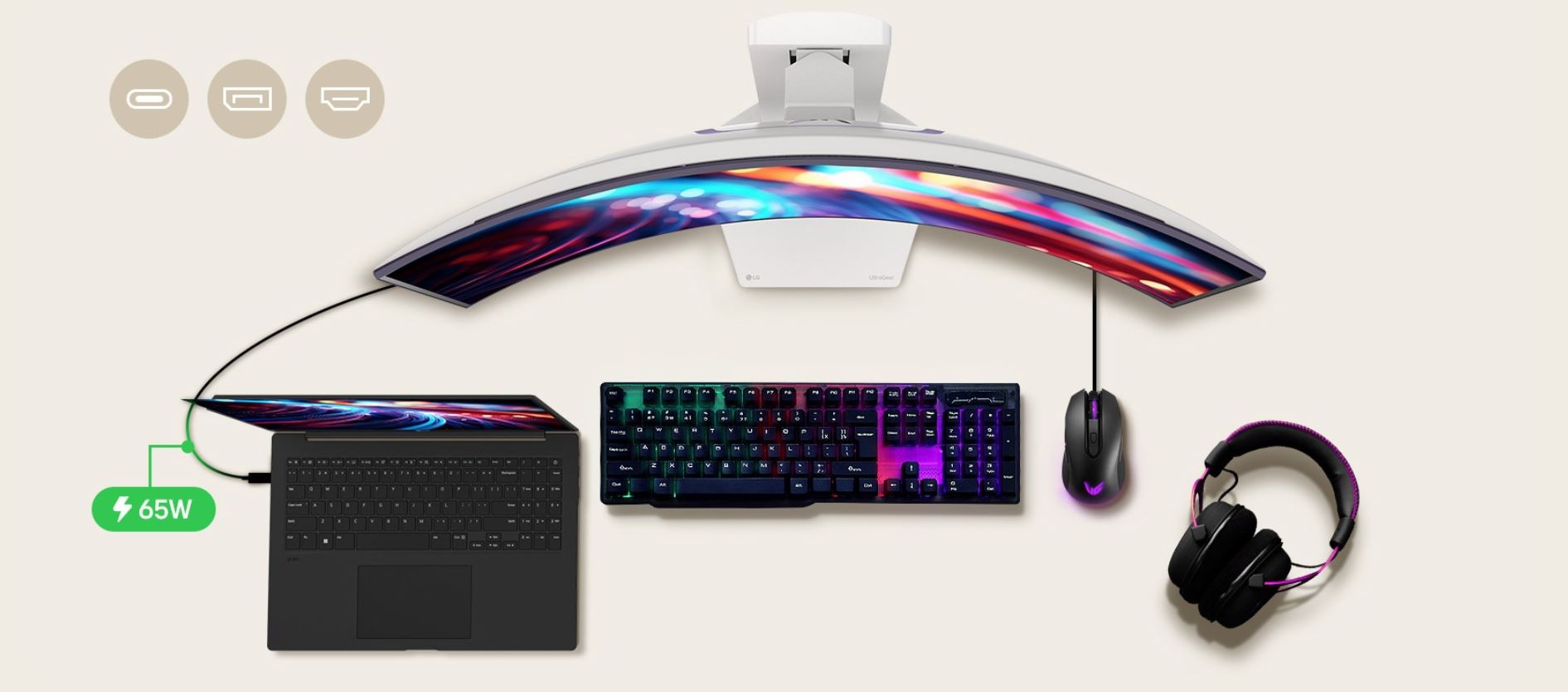 PĹ™ipojte svĹŻj notebook k monitoru pomocĂ USB-C kabelu pro napájenĂ aĹľ 65 W, ÄŤĂmĹľ odpadá potĹ™eba samostatnĂ©ho adaptĂ©ru. Vychutnejte si rozlišenĂ WQHD a obnovovacĂ frekvenci 240Hz prostĹ™ednictvĂm rozhranĂ DP 1.4 nebo HDMI 2.1, abyste mohli hrát hry bez pĹ™erušenĂ.