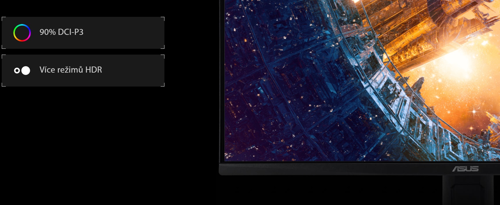 TUF Gaming VG34VQ3B využívá výhody technologie HDR a díky ní v porovnání s běžnými monitory nabízí zářivější barvy a vyšší úroveň kontrastu.