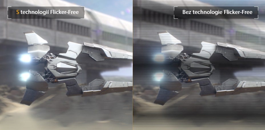 Technologie Flicker-Free redukuje blikání, čímž minimalizuje únavu očí a zvyšuje pohodlí při dlouhých herních maratonech.