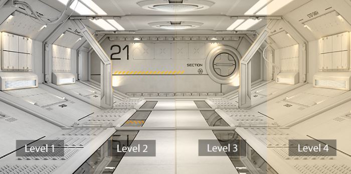 Technologie ASUS Low Blue Light snižuje množství potenciálně škodlivého modrého světla vyzařovaného displejem. K dispozici jsou čtyři různá nastavení filtru pro regulaci míry redukce modrého světla.