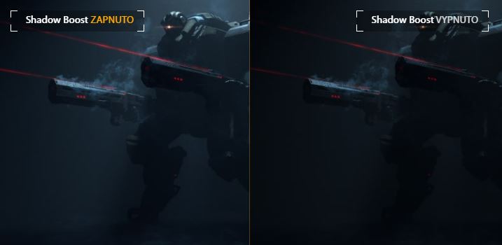 Technologie ASUS Shadow Boost projasňuje tmavé oblasti hry, aniž by přesvětlovala světlé oblasti, čímž zlepšuje celkové zobrazení a zároveň usnadňuje odhalení nepřátel skrytých v tmavých oblastech mapy.