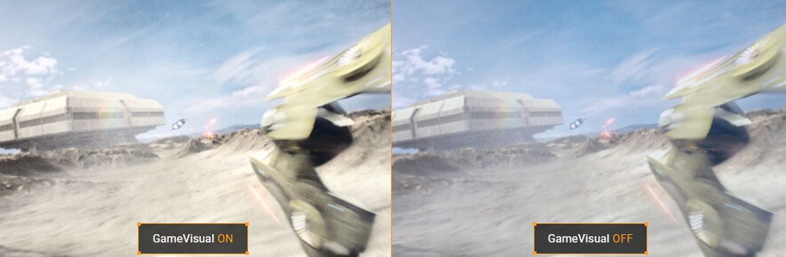 Technologie ASUS GameVisual nabízí osm přednastavených režimů zobrazení, které vylepšují vizuální stránku různých typů obsahu. Mezi režimy lze snadno přepínat pomocí klávesové zkratky nebo nabídky OSD.