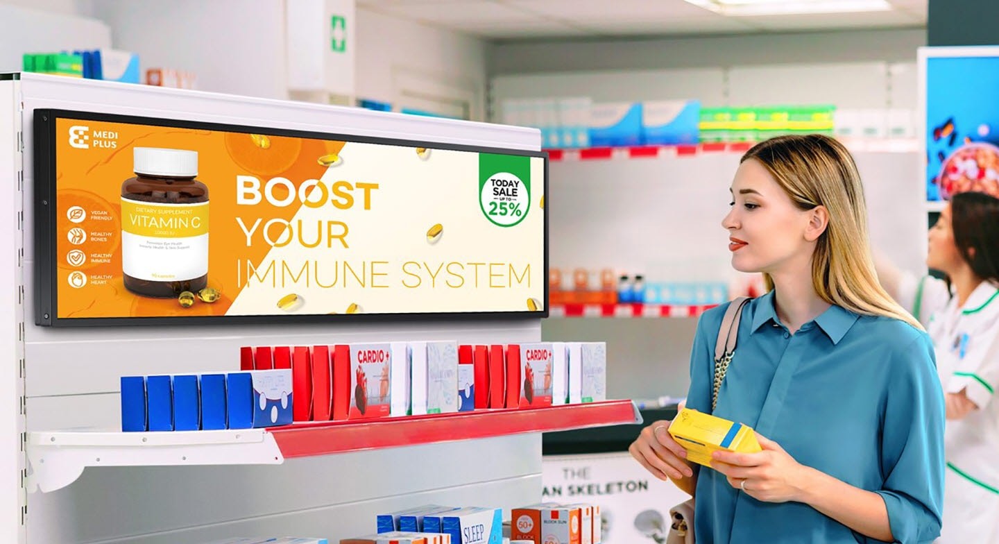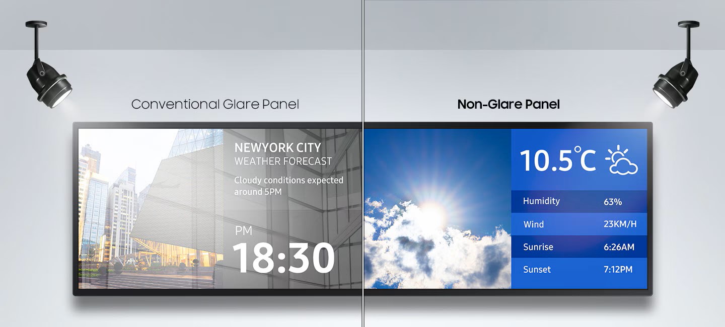 Všestrannost a nákladová efektivita jsou v digital signage nezbytností. Panel poskytujte živé, realistické obrazy prostřednictvím jedinečného vizuálního zážitku. Tyto displeje s úrovní jasu až 700 nitů poskytují divákům jasný a bohatý obraz. Spolehlivé panely bez odlesků zlepšují viditelnost z každého úhlu bez ohledu na denní dobu.