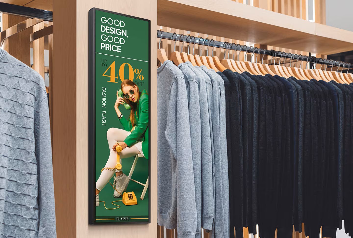 Upoutejte pozornost zákazníků pomocí všestrannějšího a působivějšího digitálního značení. Vizuály lze snadno prohlížet na displejích, které jsou instalovány v úzkém vertikálním prostoru, což vytváří více příležitostí ke sdělování vašich klíčových sdělení napříč prostředími.