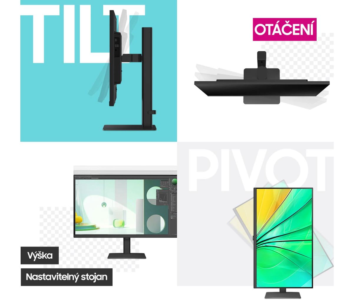 Užívej si dokonalý komfort v jakémkoliv prostředí. Stojan s možností výškového nastavení či úpravy otáčení nebo náklonu poskytne vždy ten nejlepší úhel pro maximální užitek a pokročilou přizpůsobitelnost.