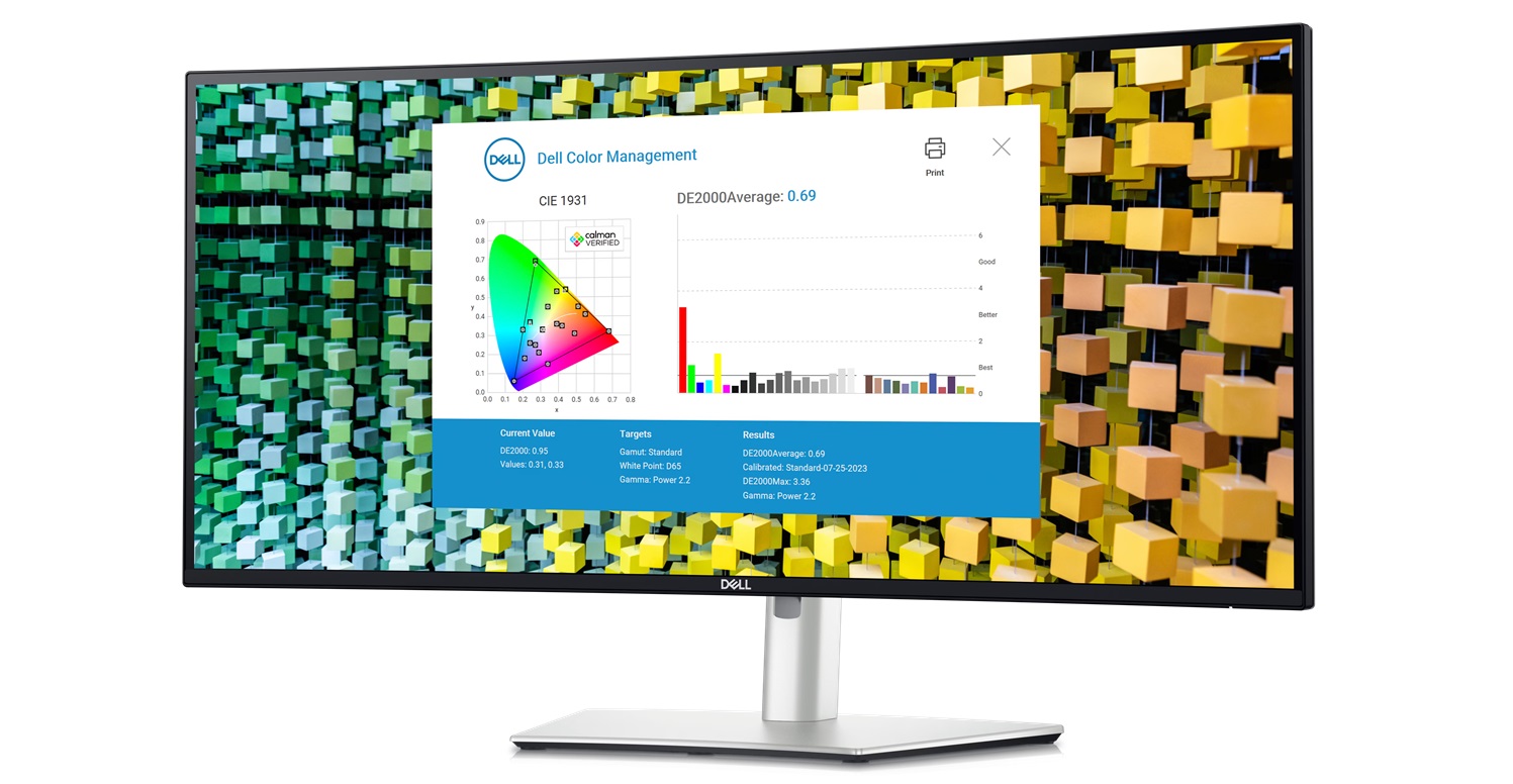 Snadno kalibrujte barvy monitoru v novém softwaru Dell Colour Management s certifikací Calman Verified. Software Dell Colour Management je kompatibilní s mnoha operačními systémy včetně Windows a macOS.