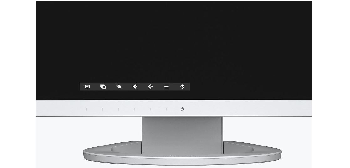 Přední strana monitoru EV3895 je vybavena elektrostatickými ovládacími prvky, jež nahrazují mechanická tlačítka. To zaručuje snadné ovládání a navíc i mimořádnou eleganci. Všechny ovládací prvky a také reproduktory se nalézají v rámečku a směřují dopředu k uživateli. Zajišťují snadnou manipulaci a jsou dokonale přizpůsobeny plochému, téměř bezrámovému provedení monitoru.