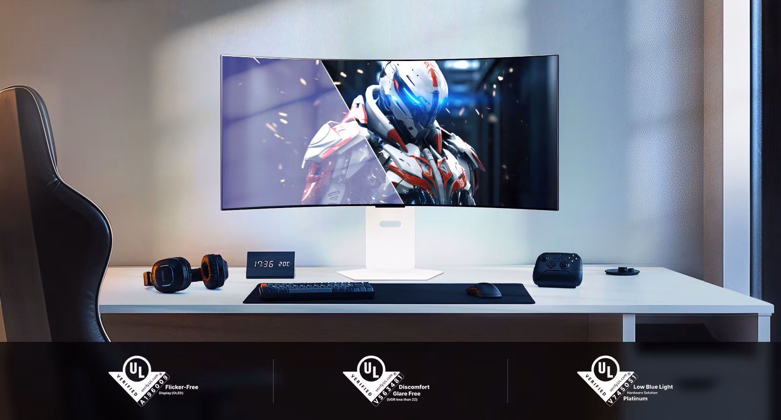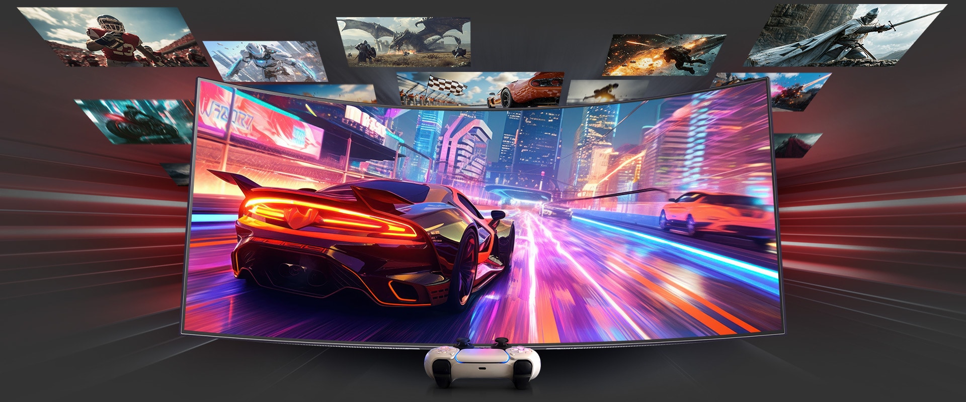 ZakĹ™ivenĂ˝ monitor OLED nabĂzĂ dĂky vyváženĂ©mu a optimalizovanĂ©mu pomÄ›ru stran 21:9 pohlcujĂcĂ a podmanivĂ˝ zážitek pĹ™i hranĂ her i sledovánĂ rĹŻznĂ©ho zábavnĂho obsahu.