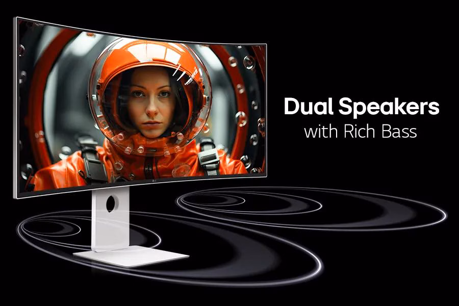 DuálnĂ reproduktory. HlubokĂ˝, pohlcujĂcĂ zvuk.