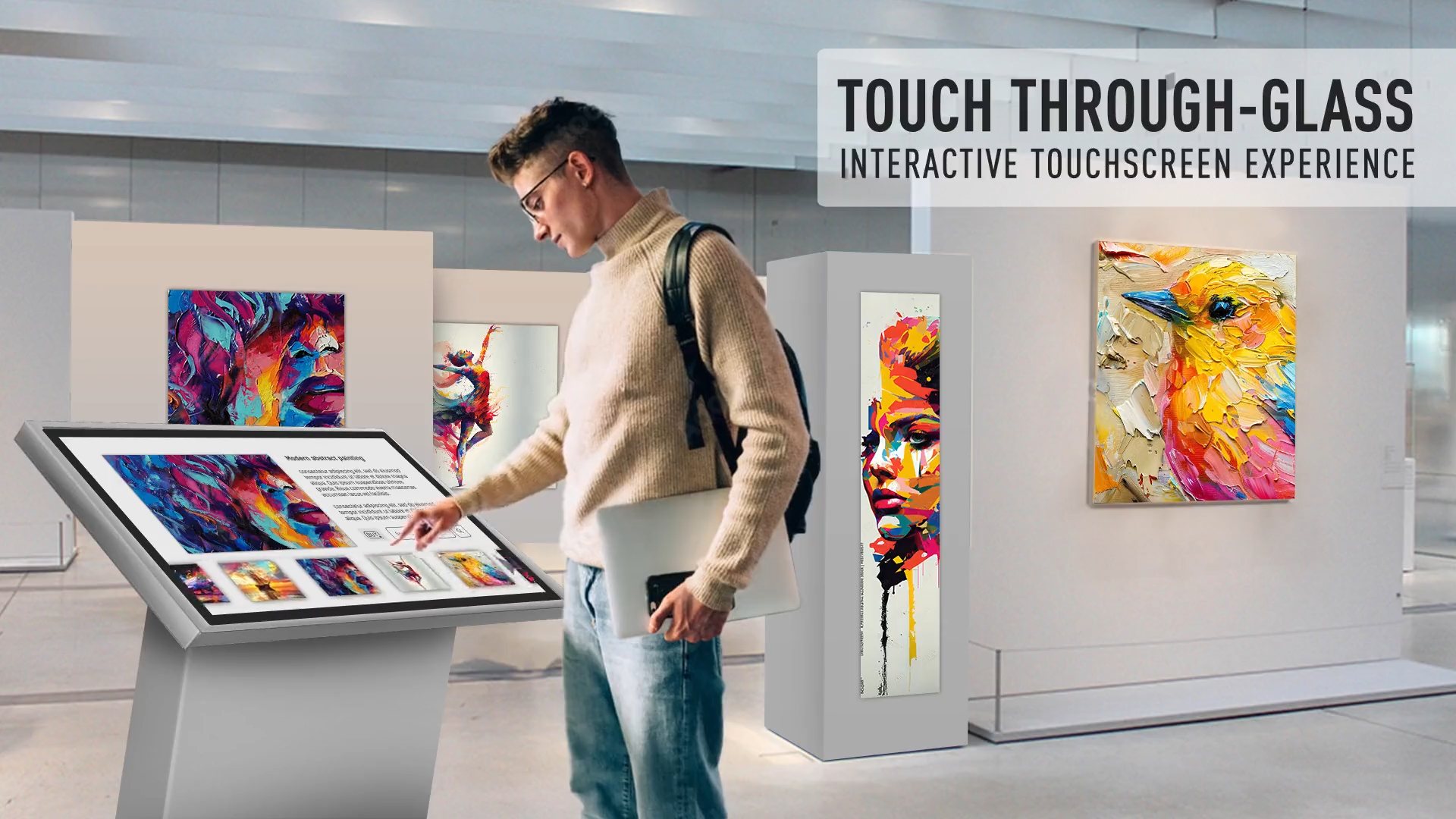 Tato dotyková obrazovka je ideálnĂ pro vytvářenĂ interaktivnĂch displejĹŻ. VhodnĂ© jejĂ pouĹľitĂ ve vitrĂnách, vĂ˝lohách, realitnĂch kancelářĂch, obchodech nebo v restauracĂch.