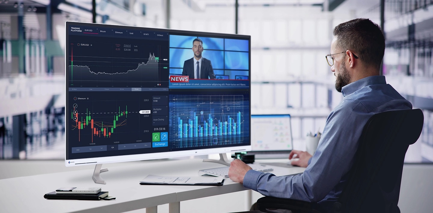 Model EV4340X je vybaven prostornou 42,5palcovou obrazovkou s rozlišením 4K a připojením USB typu C, které moderním profesionálům usnadňuje sledování a ovládání.