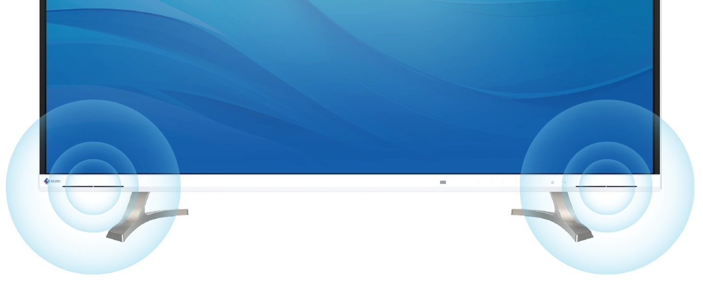 V minimalistickém předním rámečku monitoru jsou umístěny dva 4wattové reproduktory. Zvuk je čistý, ať už monitor používá jednotlivec, nebo několik lidí během jednání.