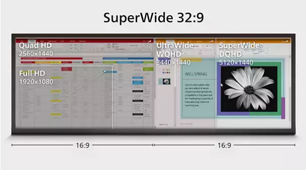 49palcová obrazovka 32:9 SuperWide, s rozlišenĂm 5120 x 1440, je urÄŤena k nahrazenĂ nastavenĂ vĂce obrazovek pĹ™i hromadnĂ©m širokoĂşhlĂ©m sledovánĂ. Je to jako postavit vedle sebe dva 27palcovĂ© displeje 16:9 Quad HD. Monitory SuperWide nabĂzejĂ plochu obrazovky odpovĂdajĂcĂ dvÄ›ma monitorĹŻm bez komplikovanĂ©ho nastavenĂ.