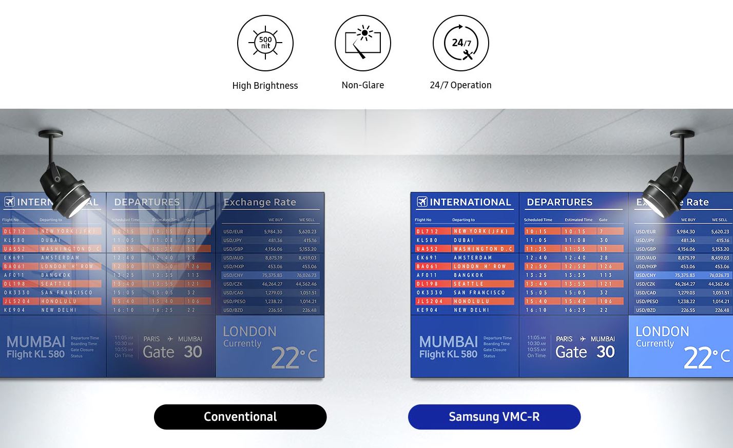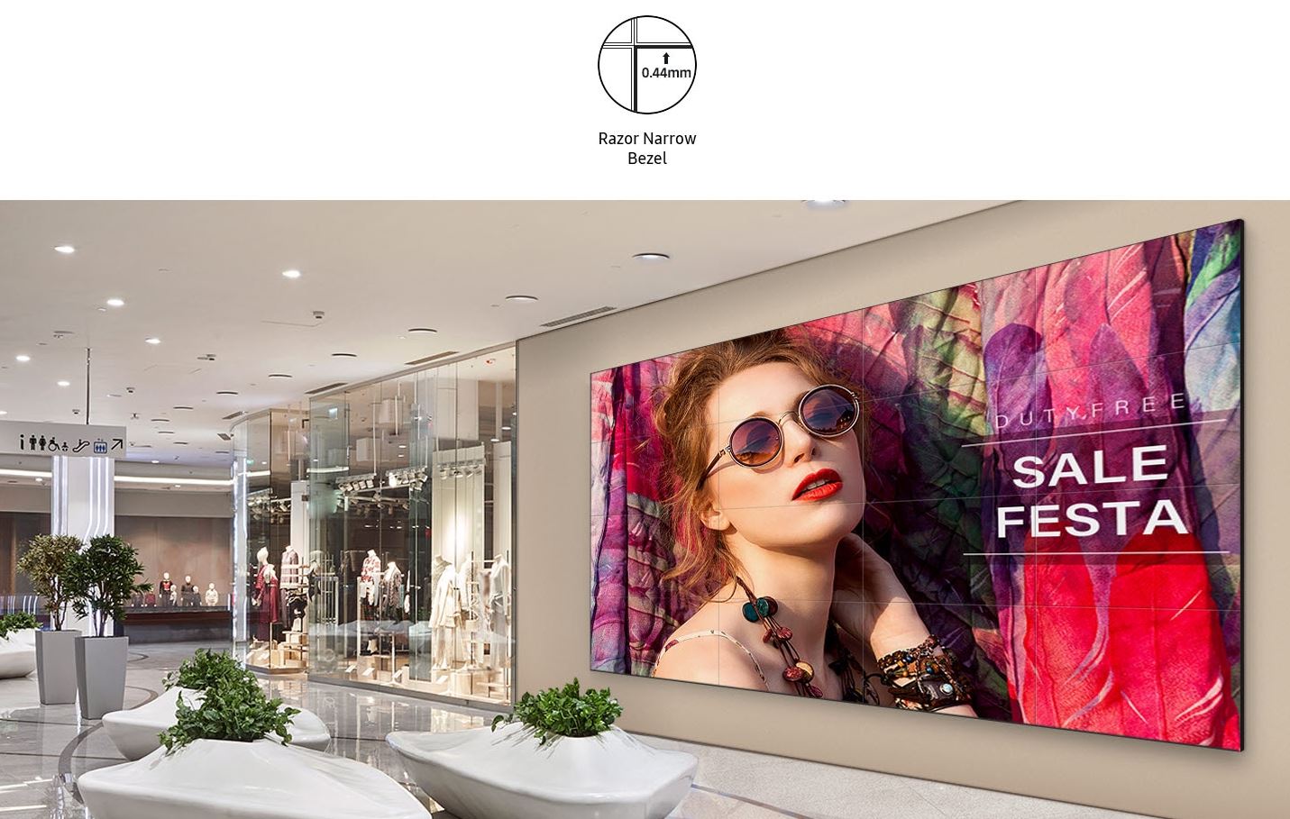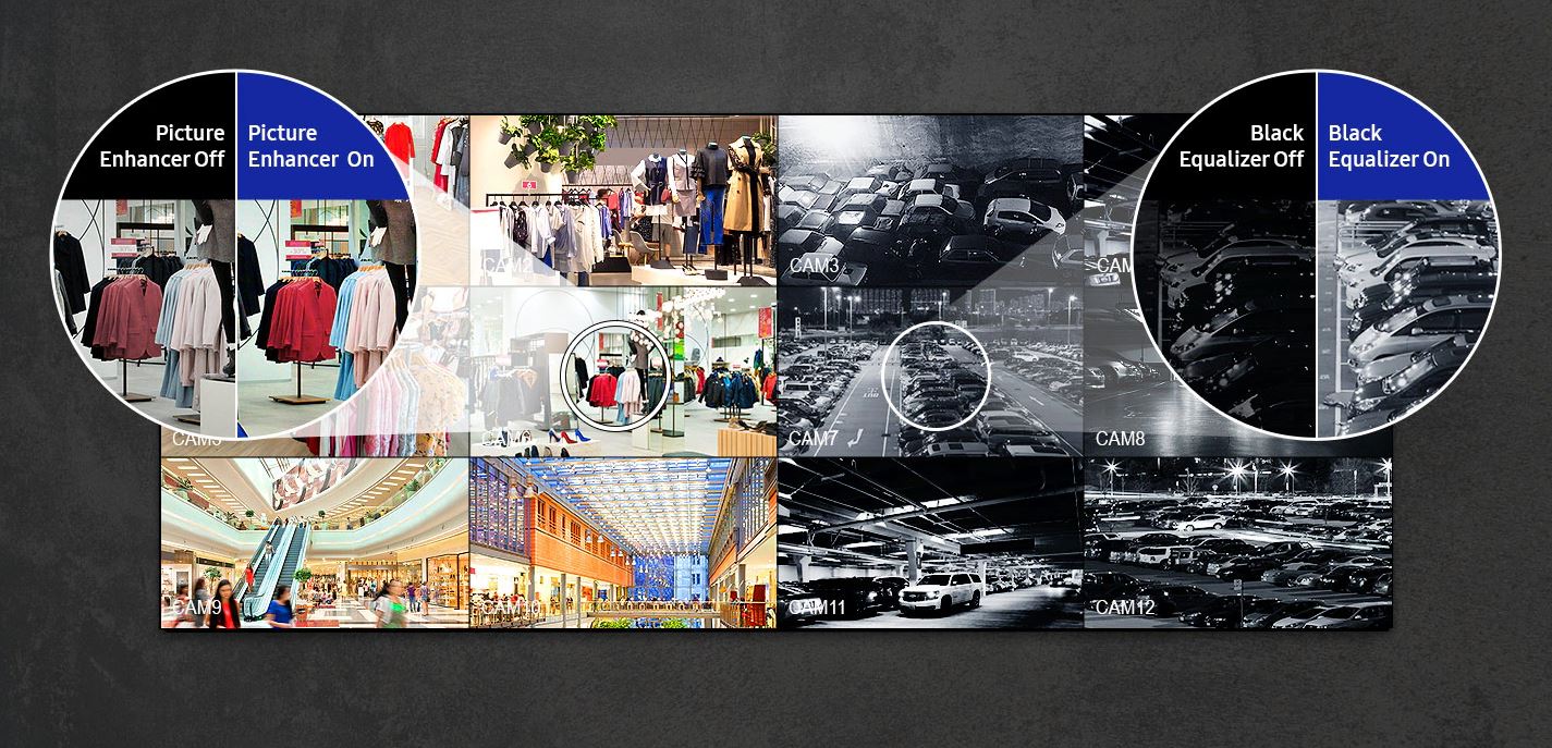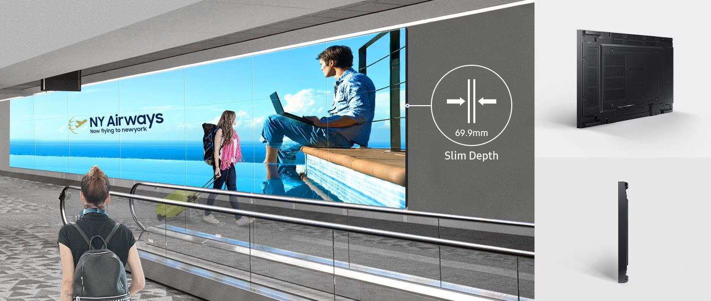 Díky mimořádně úzkému rámečku o šířce pouhých 0,44 mm a pokročilé technologii vylepšení obrazu od společnosti Samsung spolu s širokými pozorovacími úhly poskytuje model VMC-R působivý a bezproblémový zážitek. Díky modernímu tenkému designu se displej hodí do jakéhokoli obchodního prostředí.