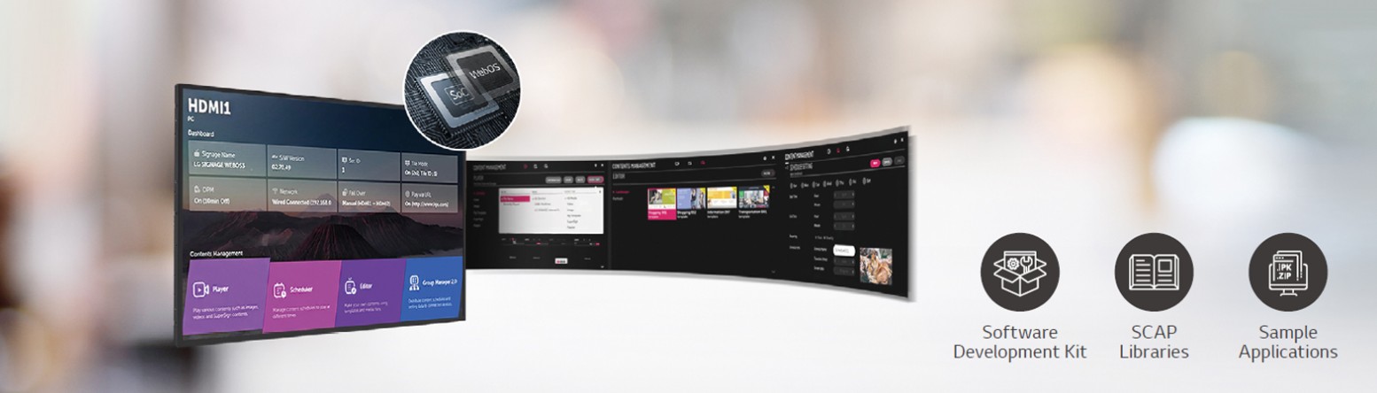webOS 6.0, vylepšenĂ˝ v SoC a webovĂ©m enginu, je k dispozici na TNF5P pro plynulĂ© provádÄ›nĂ nÄ›kolika ĂşkolĹŻ. Platforma LG webOS smart signage zvyšuje uĹľivatelskĂ˝ komfort dĂky intuitivnĂmu grafickĂ©mu uĹľivatelskĂ©mu rozhranĂ a poskytuje SI a/nebo vĂ˝vojářům jednoduchĂ© nástroje pro vĂ˝voj aplikacĂ, jako jsou SDK (Software Development Kit), SCAP, ukázkovĂ© aplikace.