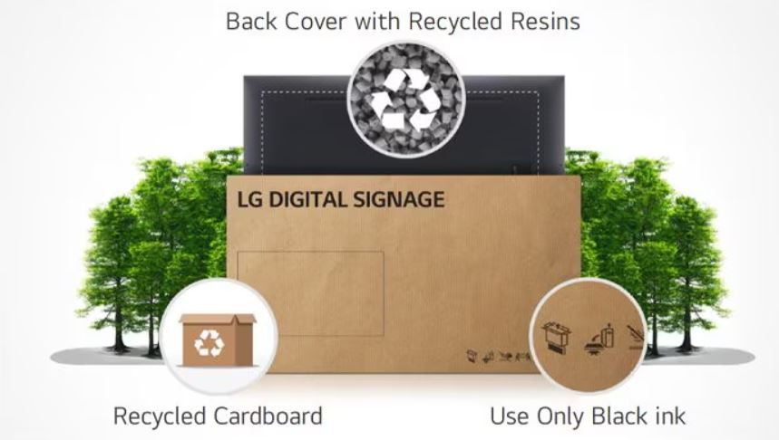 K vĂ˝robÄ› zadnĂch krytĹŻ pro produkty digitálnĂho znaÄŤenĂ se pouĹľĂvajĂ recyklovanĂ© pryskyĹ™ice a spoleÄŤnost LG plánuje tuto praxi rozšĂĹ™it i na dalšà modely. KromÄ› toho byl k vĂ˝robÄ› obalovĂ˝ch materiálĹŻ částeÄŤnÄ› pouĹľit recyklovanĂ˝ karton a tiskovĂ© informace na obalovĂ˝ch materiálech byly vytištÄ›ny pouze ÄŤernĂ˝m inkoustem.