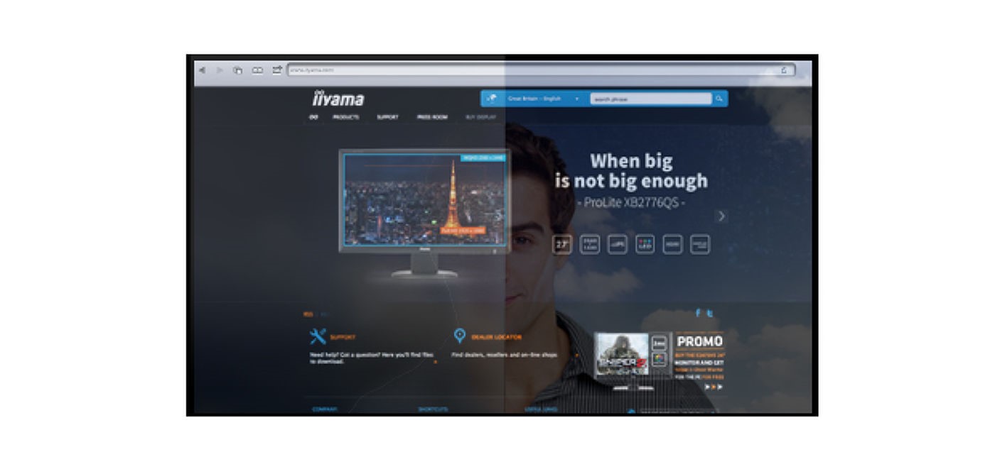 Model iiyama LH6541UHS-B1AG, zasazený do tenkého rámečku, je profesionální digitální displej, který nabízí nepřetržitý provoz v orientaci na výšku i na šířku.