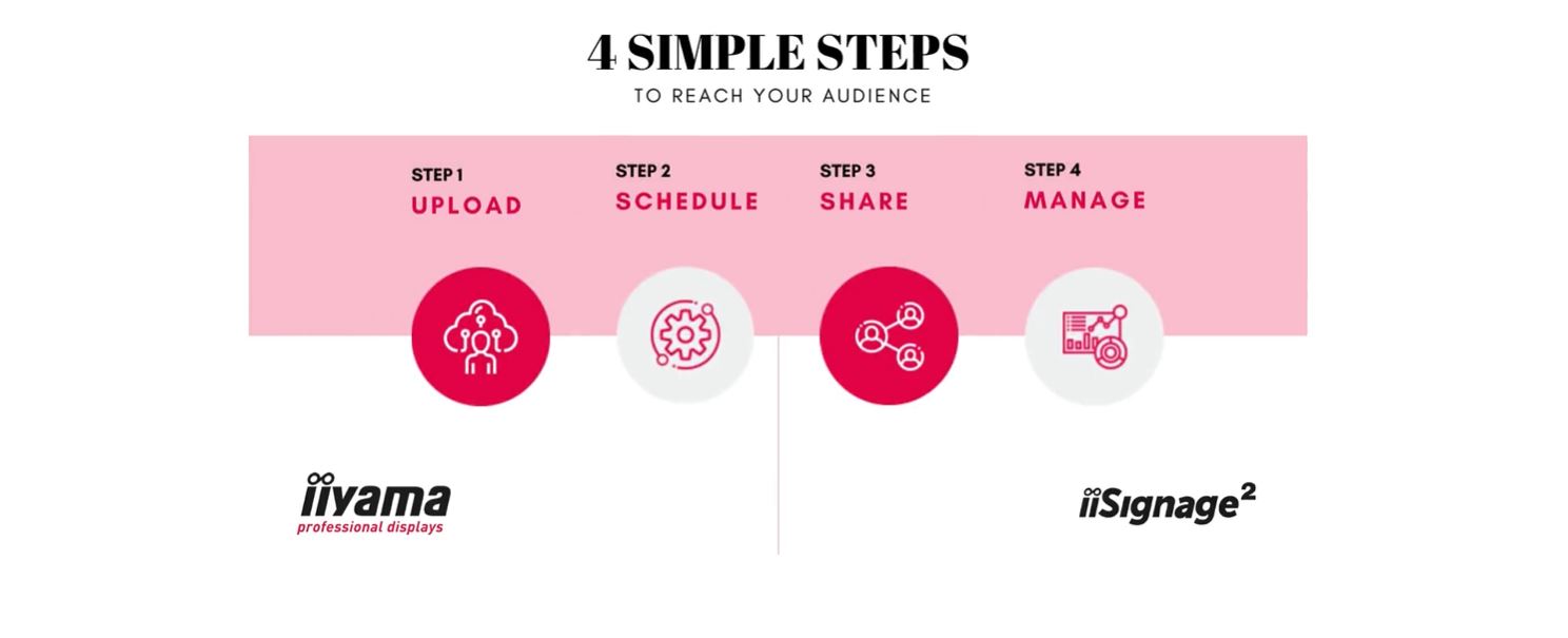 iiSignage2 je naše platforma pro správu obsahu digitálních značek, která umožňuje snadné zobrazování a ovládání obsahu a bezpečné řízení displejů. Systém pro správu obsahu (CMS) vám poskytuje úplnou kontrolu nad vašimi zprávami a reklamami na dálku a bezpečně.