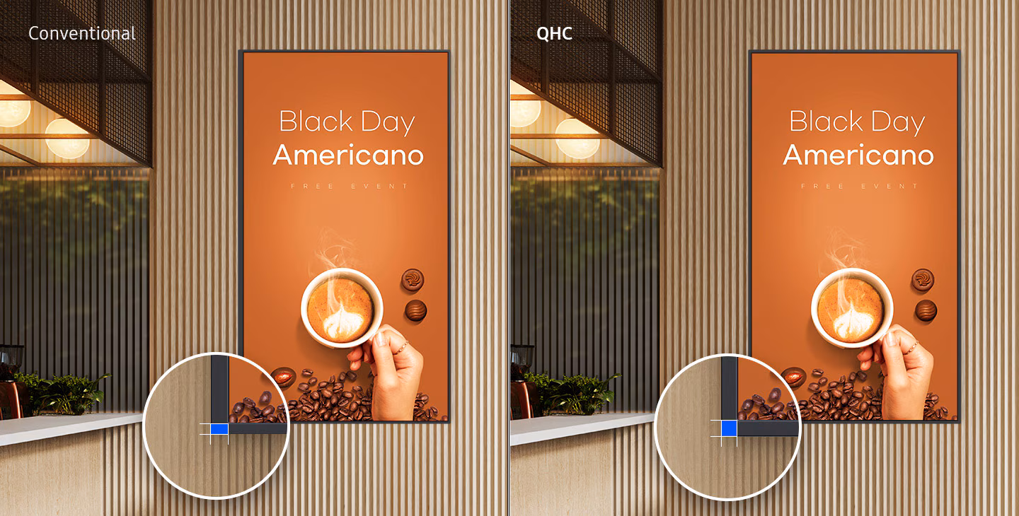Přivítejte QHC – vůbec nejtenčí displej z řady profesionálních displejů Samsung UHD. Do vašeho podnikání přináší eleganci a zároveň na maximum využívá jemu dostupný prostor. Vylepšená interní řešení a intuitivní uživatelské rozhraní na domovské obrazovce usnadňují jeho používání. Ať už podnikáte v jakémkoliv oboru, efektivita a inovace v designu QHC vám pomohou mnohem snáze dosáhnout dalšího růstu.