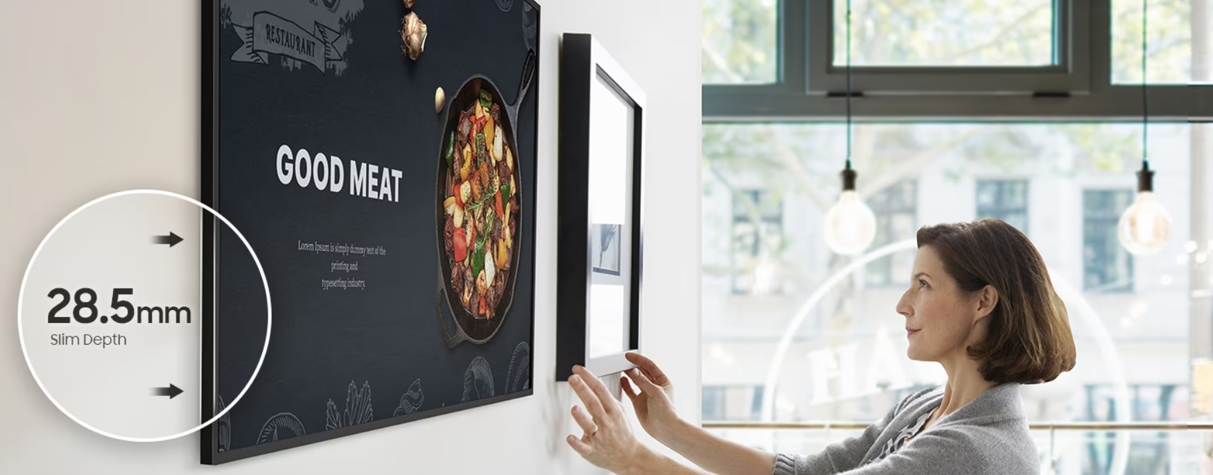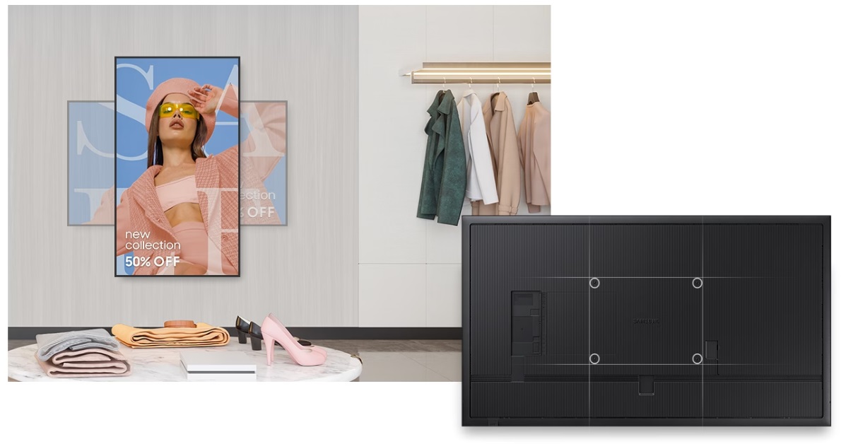 Výjimečně tenký design s hloubkou pouhých 28,5 mm z něj činí vůbec nejtenčího zástupce z řady Samsung UHD. Je kompatibilní s nástěnným držákem Slim Fit*, který umožňuje jeho úhlednou a snadnou instalaci na libovolné místo QMC optimalizuje prostor díky svému elegantnímu designu, který dokonale zapadne do vašeho firemního prostředí.