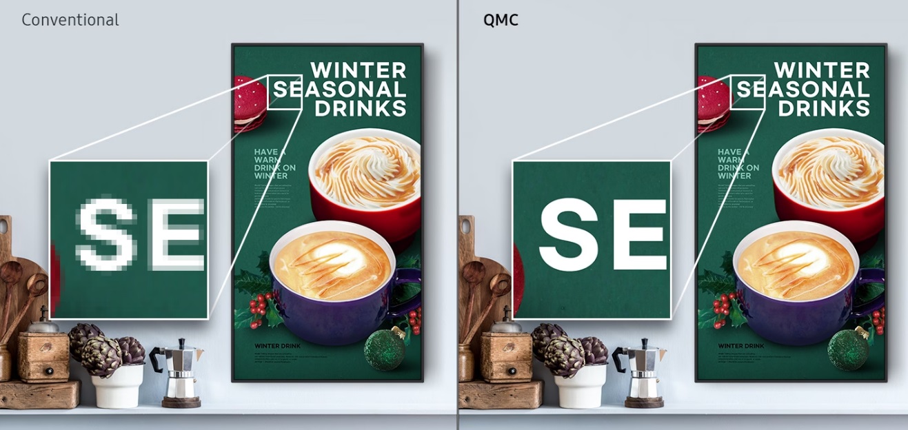 Přivítejte QMC – vůbec nejtenčí displej z řady profesionálních displejů Samsung UHD. Do vašeho podnikání přináší eleganci a zároveň na maximum využívá jemu dostupný prostor. Vylepšená interní řešení a intuitivní uživatelské rozhraní na domovské obrazovce usnadňují jeho používání. Ať už podnikáte v jakémkoliv oboru, efektivita a inovace v designu QMC vám pomohou mnohem snáze dosáhnout dalšího růstu.