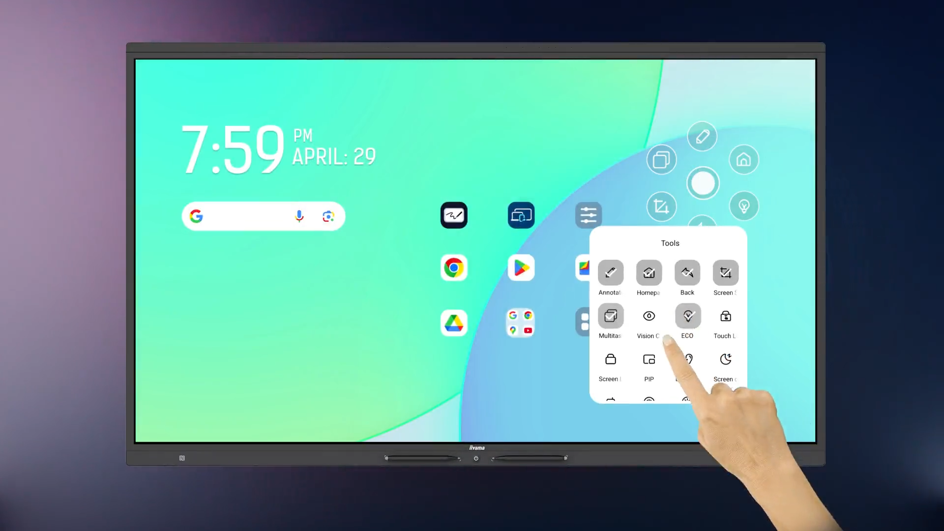 Displej běží na iiWare 21E s Androidem 14 (EDLA certifikace) a bez problémů se integruje do prostředí Google. Funkce jako WiFi 6, Bluetooth 5.0, čtečka NFC a pohybové čidlo PIR zajišťují vyšší úroveň konektivity, energetické účinnosti a řízení přístupu. S nástroji iiControl (DMS), iiShare a integrovanou aplikací EShare pro bezdrátové sdílení obrazovky podporuje model TE7515A-B1AG plynulou týmovou spolupráci – ať už prezentuješ, vyučuješ, nebo brainstormuješ.