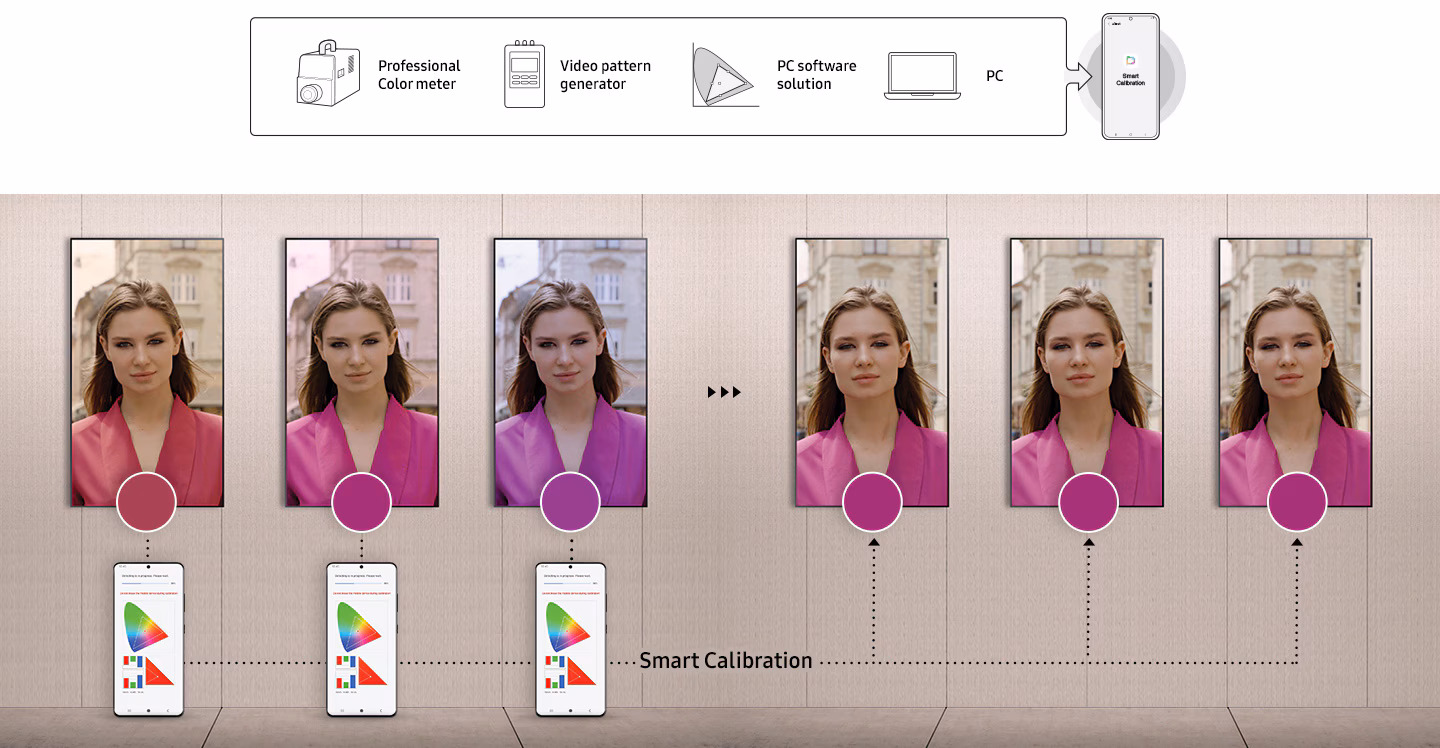 Docilte dokonalĂ© jednoty v rámci propagaci vašà znaÄŤky – na kaĹľdĂ©m displeji, na kaĹľdĂ©m mĂstÄ›. S pomocĂ intuitivnĂ mobilnĂ aplikace Samsung Smart Calibration je kaĹľdĂ˝ displej správnÄ› kalibrován a zobrazuje loga znaÄŤky a dalšà reklamnĂ materiály v pĹ™esnÄ› poĹľadovanĂ˝ch barvách.
