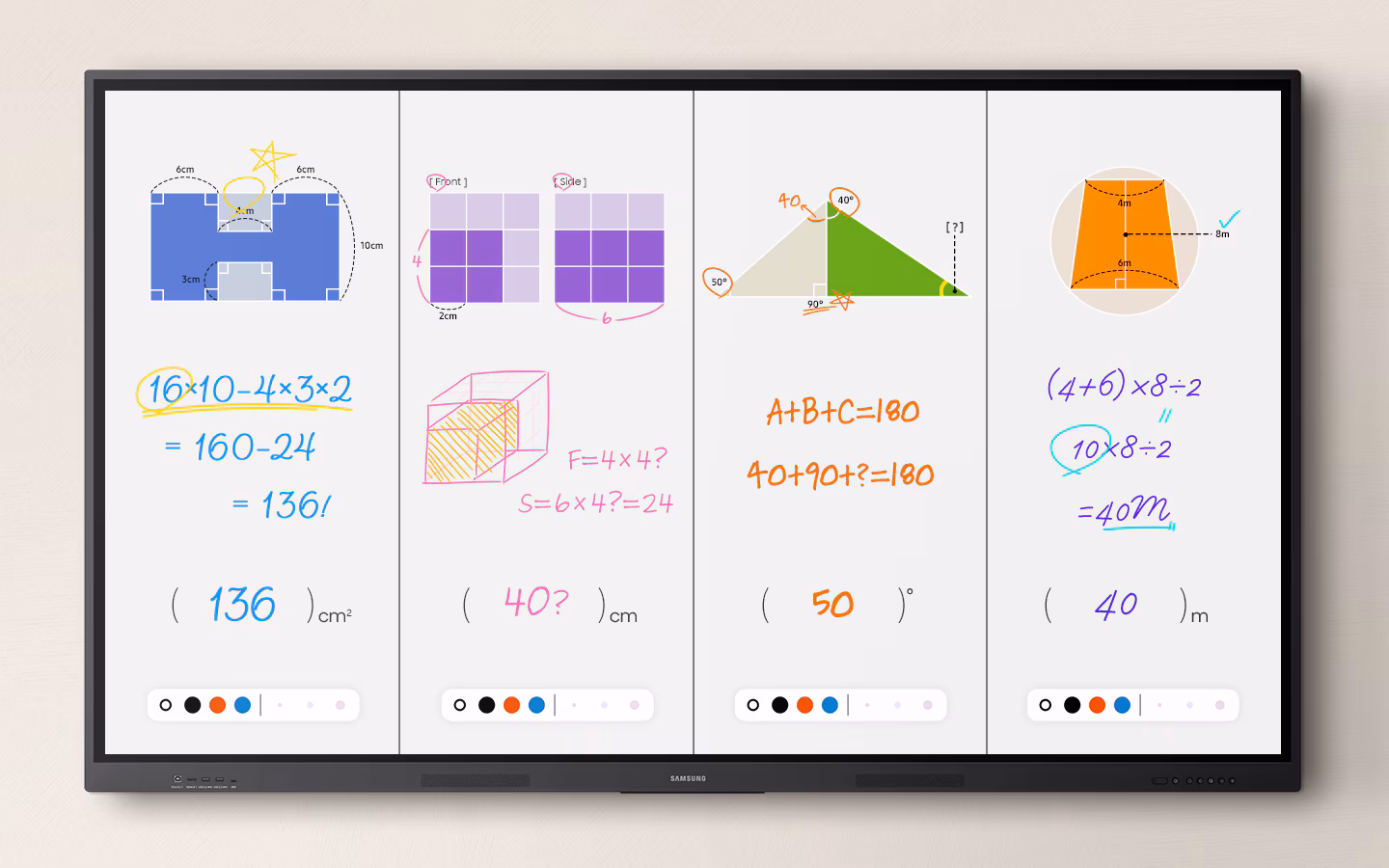 Upgradovaná aplikace Note umožňuje až čtyři nezávislé zóny poznámek na jedné stránce, což umožňuje více studentům používat tabuli současně. Studenti mohou pracovat ve svých vlastních zónách, aniž by ovlivňovali ostatní, což podporuje spolupráci i individuální učení.
