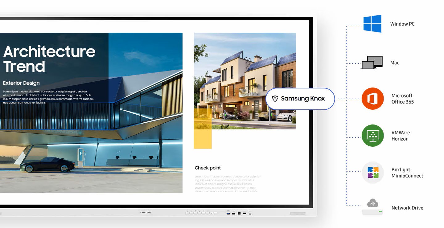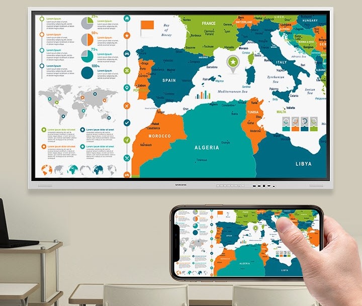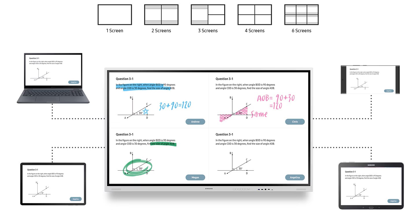 S technologiĂ SmartView+ mĹŻĹľete k obrazovce pĹ™ipojit aĹľ 50 zaĹ™ĂzenĂ najednou, pĹ™iÄŤemĹľ multi-view dovolĂ promĂtnout aĹľ 4 plochy souÄŤasnÄ›. Toto bezdrátovĂ© sdĂlenĂ je ideálnĂ pro vÄ›tšà meetingovĂ© mĂstnosti nebo digitalizovanĂ© uÄŤebny.