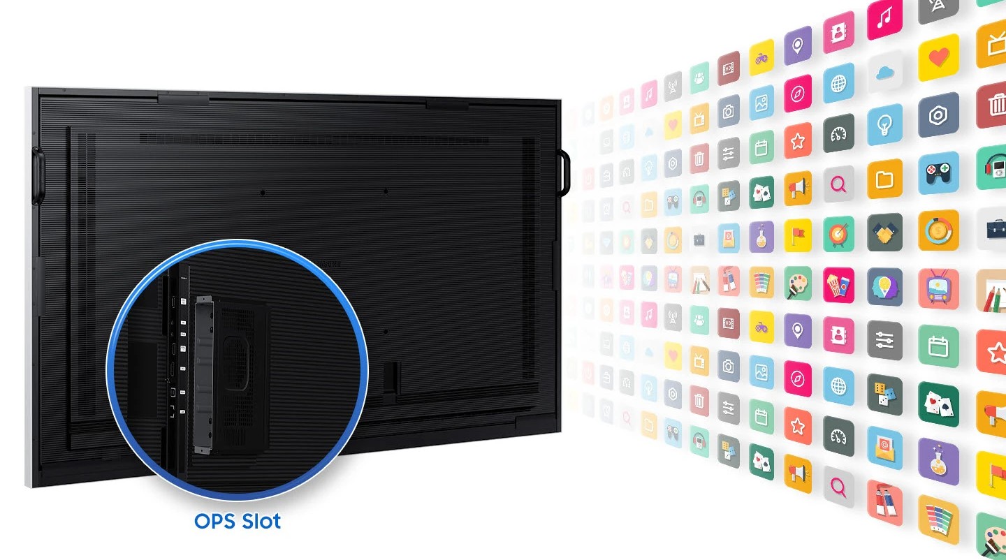 Se slotem OPS (Open Pluggable Specification) mohou vyuÄŤujĂcĂ vyuĹľĂvat vĂ˝uková Ĺ™ešenĂ tĹ™etĂch stran. Flip Pro takĂ© umoĹľnĂ nasazenà školnĂho informaÄŤnĂho systĂ©mu (SIS) nebo instalaci vĂ˝ukovĂ˝ch aplikacĂ a nástrojĹŻ pro vĂ˝uku.