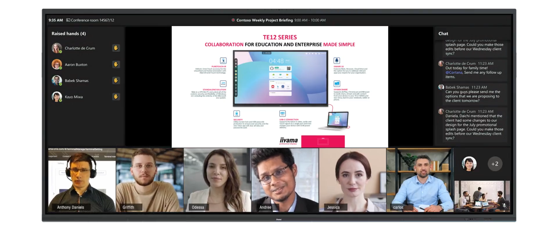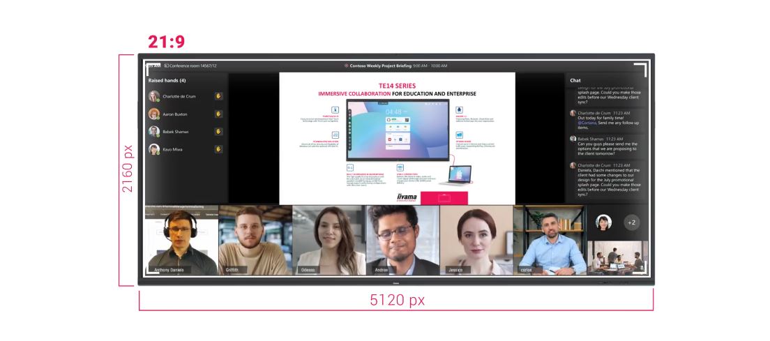DĂky ultraširokoĂşhlĂ©mu pomÄ›ru stran poskytuje tato interaktivnĂ dotyková obrazovka rozsáhlĂ© plátno pro umĂstÄ›nĂ vĂce oken obsahu vedle sebe, coĹľ zlepšuje moĹľnosti multitaskingu. Formát 21:9 Ultra Wide je takĂ© dokonalou optimalizacĂ pro Microsoft Teams Front Row, která všem účastnĂkĹŻm pĹ™inášà vĂ˝jimeÄŤnĂ˝ zážitek a rovnost zasedacĂ mĂstnosti.