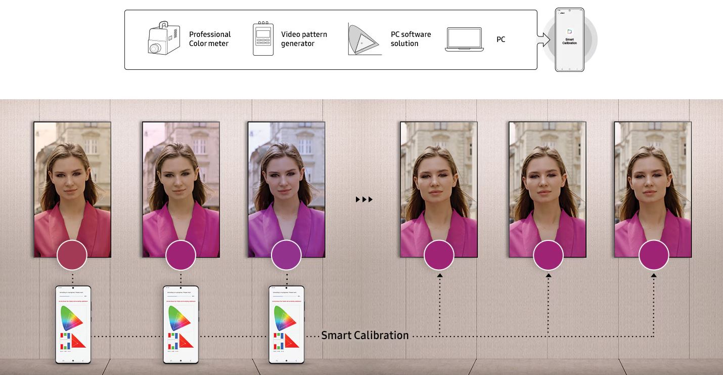 ZaruÄŤuje Ăşplnou konzistenci znaÄŤky na kaĹľdĂ©m displeji na kaĹľdĂ©m mĂstÄ›. PomocĂ mobilnĂ aplikace Samsung Smart Calibration zajistĂte správnou kalibraci kaĹľdĂ©ho displeje a zobrazĂte loga znaÄŤky a dalšà doprovodnĂ© materiály v pĹ™esnÄ› poĹľadovanĂ˝ch barvách.