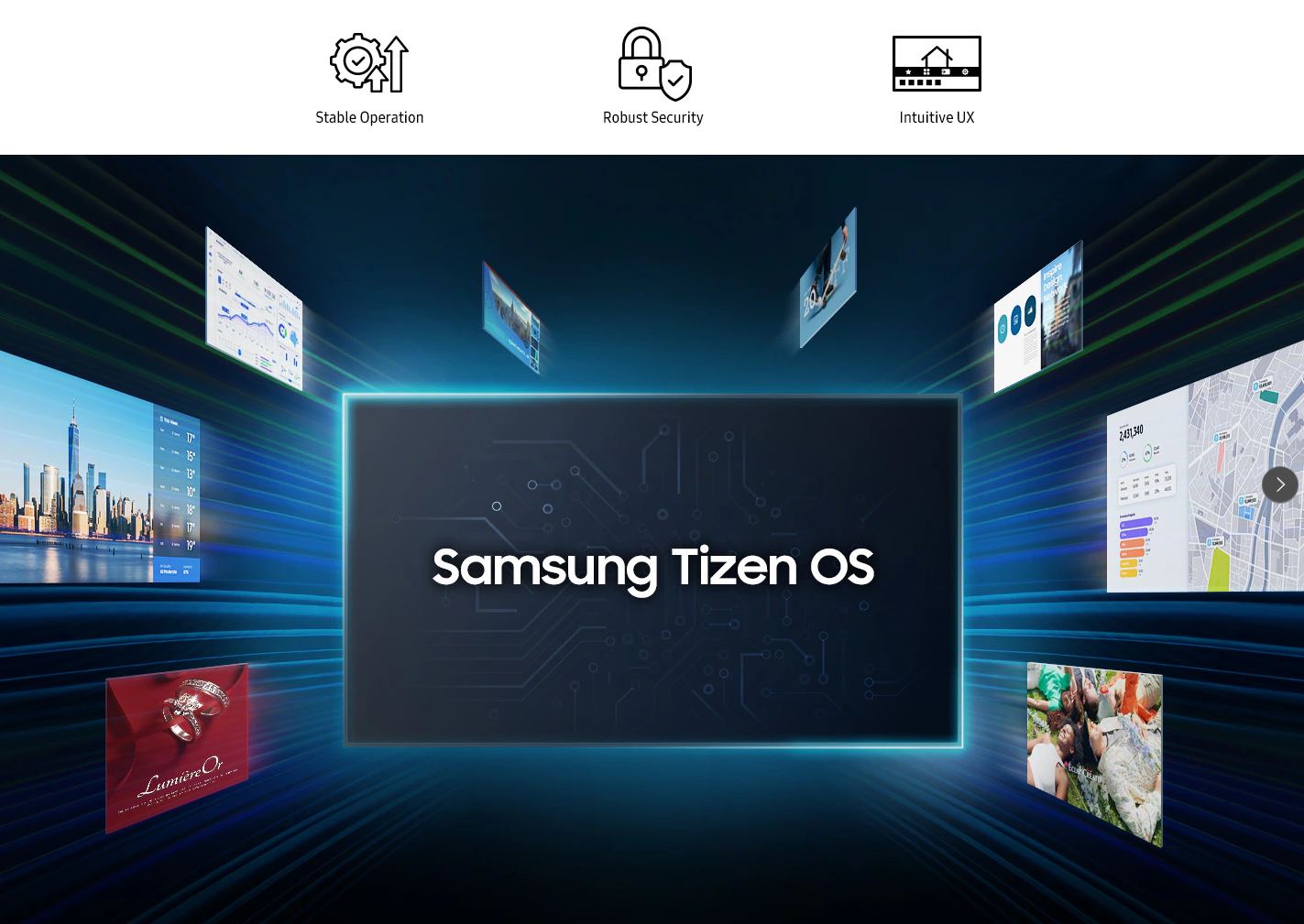 OperaÄŤnĂ systĂ©m Tizen poskytuje vynikajĂcĂ vĂ˝kon a uĹľivatelskĂ© zážitky a nabĂzĂ robustnĂ stabilitu a zabezpeÄŤenĂ, kterĂ© zajistĂ bezproblĂ©movĂ˝ provoz pro vaše firemnĂ potĹ™eby. PrĹŻběžnĂ© aktualizace pĹ™inášejĂ novĂ© funkce, kterĂ© povýšà vaše Ĺ™ešenĂ pro znaÄŤenĂ.