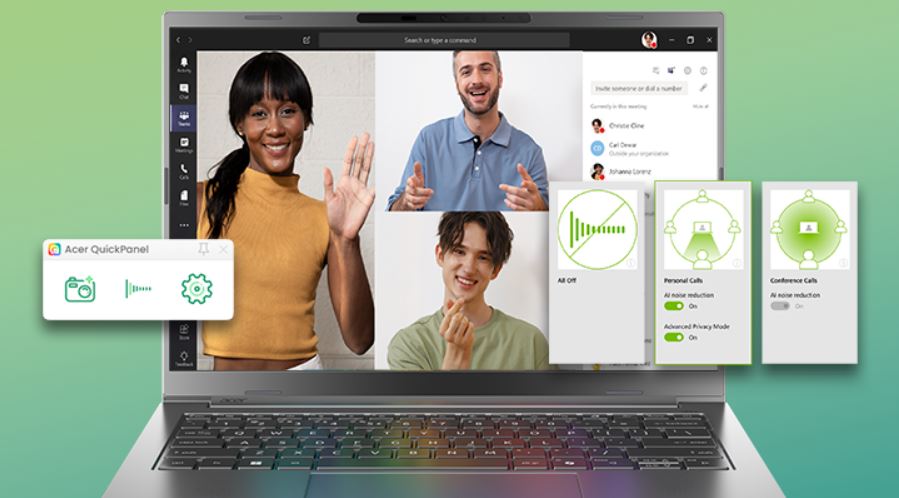 Funkce Acer PurifiedVoice™ 2.0 a PurifiedView™ 2.0 vylepšujĂ videohovory tak, Ĺľe potlaÄŤujĂ hluk na pozadĂ, udrĹľujĂ vaši pozornost a zajišťujĂ, abyste vĹľdy vypadali a znÄ›li co nejlĂ©pe.