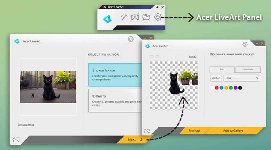 V mĹľiku odstraĹte pozadĂ obrázkĹŻ s aplikacĂ Acer LiveArt™. Upravujte a vytvářejte nálepky, kterĂ© mĹŻĹľete vloĹľit kamkoli, a kdyĹľ vytvoĹ™Ăte snĂmek obrazovky nebo otevĹ™ete obrázek, nabĂdka aplikace intuitivnÄ› vyskoÄŤĂ a nabĂdne pomoc.
